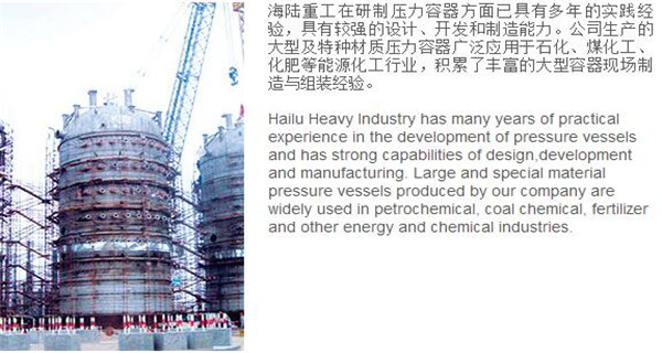蘇州海陸重工股份有限公司位于江蘇省張家港市開發(fā)區(qū),是國內(nèi)一流的節(jié)能環(huán)保設(shè)備的專業(yè)設(shè)計(jì)制造企業(yè),目前并已初步形成鍋爐產(chǎn)品、大型壓力容器、核電設(shè)備、低溫產(chǎn)品、環(huán)保工程共同發(fā)展的業(yè)務(wù)格局。公司創(chuàng)建于1956年,注冊資本51640萬元,占地面積近50萬平米。公司下設(shè)八個控股子公司,一個余熱鍋爐研究所,在瑞士、北京、武漢、南京、上海、杭州、廣州等地設(shè)立分支機(jī)構(gòu),擁有雄厚的研發(fā)實(shí)力。公司秉承“科技領(lǐng)航、業(yè)界先鋒”的發(fā)展理念,注重研究廢熱、余熱利用和環(huán)境保護(hù)相結(jié)合的新技術(shù)研發(fā),自主設(shè)計(jì)能力居同行前列;公司承擔(dān)過國家863計(jì)劃,江蘇省科技成果轉(zhuǎn)化專項(xiàng)資金,榮獲國家科技進(jìn)步二等獎,產(chǎn)品擁有核心自主知識產(chǎn)權(quán)并取得專利50多項(xiàng);公司推行國際先進(jìn)的管理體系標(biāo)準(zhǔn)和認(rèn)證,擁有 A級鍋爐制造許可證,A1、A2、A3級壓力容器設(shè)計(jì)和制造許可證,取得了民用核承壓設(shè)備制造資格許可證、美國機(jī)械工程師學(xué)會(ASME)“S”、“U”鋼印,通過了ISO9001質(zhì)量體系認(rèn)證、健康體系認(rèn)證和14000環(huán)境體系認(rèn)證;公司設(shè)備先進(jìn),裝備精良,專業(yè)嚴(yán)謹(jǐn)?shù)闹圃炖砟畲蛟斐銎焚|(zhì)非凡、質(zhì)量一流的“海陸”品牌聲譽(yù)。